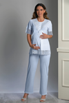 Mavi Özel Tasarım Hamile ve Lohusa Pijama Takım 3'lü Set - XL