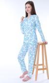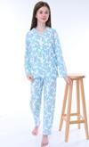 Zuzunga Mavi Papatya Desenli Düğmeli %100 Pamuk Kız Çocuk Pijama Takımı