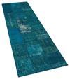 Halinet Mavi Patchwork Etnik Modern Desenli Yün Hav Toz Vermez Leke Tutmayan Salon Yolluk Mutfak El Dokuma Halı
