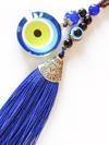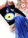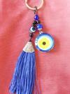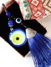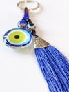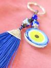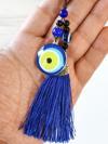 Mavi Püsküllü Nazar Boncuğu Desenli Cam Anahtarlık – Koruma, Işıltı ve Zarafetin Güçlü Sembolü