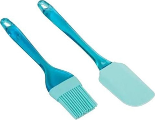 Mavi saydam saplı silikon spatula ve fırça 2'li set