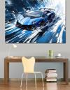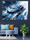 Mavi Spor Araba Hızı Dekoratif Kanvas - Mdf Ahşap Tablo