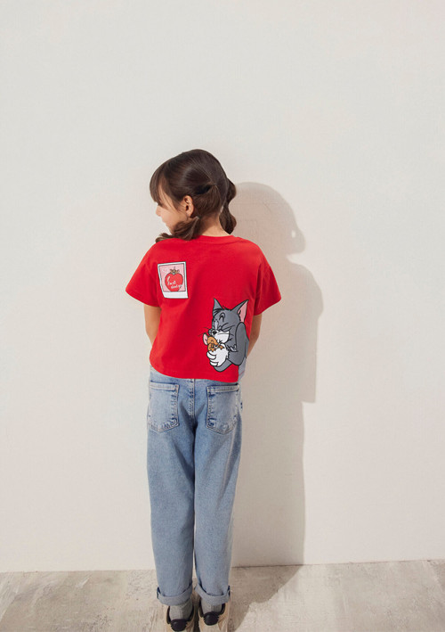 Tom ve Jerry Baskılı Kırmızı Tişört, yüzde yüz pamuklu orta ağırlıkta kumaştan üretilmiştir.