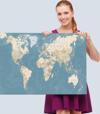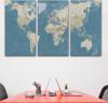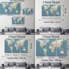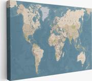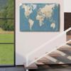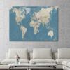 Mavi Ton İngilizce Dünya Haritası Dikdörtgen Dekoratif Kanvas Tablo, Duvar Dekoru 1040