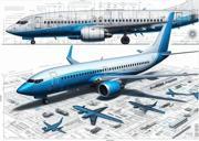 Mavi Uçak Çizimi Tasarım Mdf Tablo 50cmX 70cm