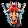 Mavi ve Kırmızı Detaylı Zürafa Kafası Duvar Sticker'ı