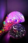 Mavi ve mor ışıkların döner yapısı, tavanınıza büyüleyici bir şekilde yıldızlar, gezegenler ve ayı yansıtarak eşsiz bir gece manzarası sunar.