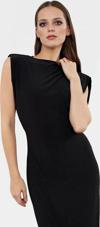 Rahat Kesim Kolsuz V Yaka Midi Elbise Polyester Dokuma Kumaş Premium Kalite - Image 1