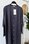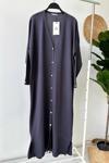 Ka Hijab Maxi Boy Düğmeli Merserize Hırka - Füme