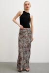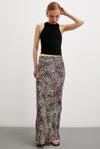 Moda Regular Baskılı Desen Günlük Maxi Boy Leopar Desenli Yırtmaç Detaylı Viskon Kumaş Dokuma Etek - Image 1