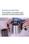 Kolayca takılıp çıkarılabilen paslanmaz çelik çay filtresi, temizliği ile pratiklik sunar ve uzun ömürlüdür.
