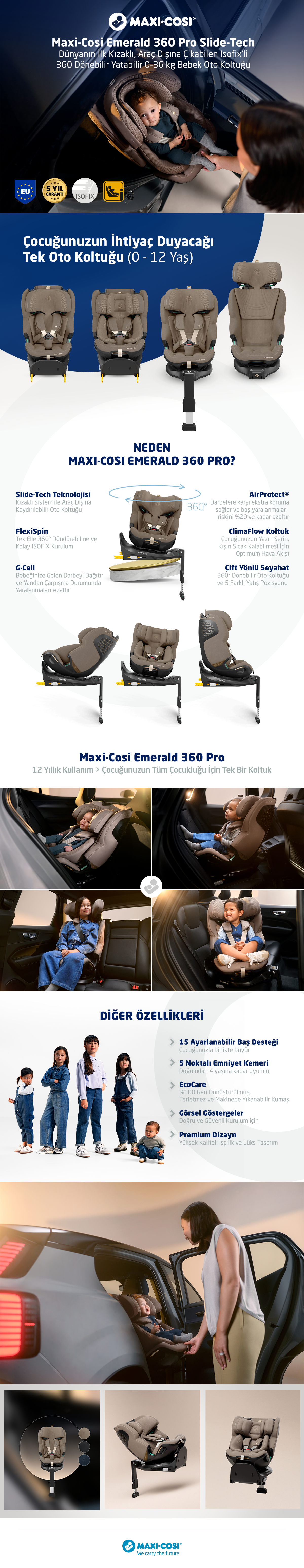Maxi-Cosi Emerald 360 Pro I-Size Dünyanın Ilk Kızaklı, Araç Dışına Çıkabilen Isofix'li 360 Dönebilir Yatabilir 0-36 kg B