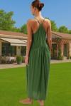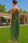 %60 Viskoz ve %40 Polyester karışımından üretilen bu elbise, yumuşak dokusu ve dayanıklı yapısı sayesinde uzun süre kullanabileceksiniz. Sade tasarımı, her bedene ve her vücut tipine uyum sağlar. Kolsuz tasarımı, yaz sıcağında serin kalmanıza yardımcı olurken, maxi boyu ise şıklığınızı tamamlayacak. Elbisenin büzgü detayları, size rahat bir hareket kabiliyeti sunar. Kolay bakım gerektirdiğinden, pratik bir seçimdir.