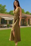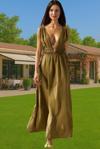 Nefes alabilen ve hafif keten kumaşı, yaz sıcağında serin kalmanızı sağlar. Büzgü detayı, elbiseye hareketlilik ve feminen bir görünüm kazandırırken, skater kalıbı vücudunuza mükemmel uyum sağlar. V yaka detayı ise şıklığınıza zarafet katar. Kolsuz tasarımı ile sıcak yaz günlerinde özgürce hareket edebilir, gün boyu rahatlıkla taşıyabilirsiniz. Elbisenin maxi boyu ise her vücut tipine uyum sağlayarak, her zaman mükemmel görünmenizi sağlar.