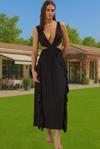 PayBuy Maxi Örme Cut Out V Yaka Plaj Elbisesi Dokulu Polyester Yazlık Zarifane Tasarım Yüksek Kalite