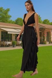 Bu şık ve rahat maxi elbise, yaz aylarının sıcak günlerinde plajda veya günlük yaşamda göz alıcı bir stil yaratmak için tasarlandı. V yakası ve cut out detayları ile feminen bir görünüm sunarken, dökümlü örme kumaşı rahatlığı ve özgürlüğü bir arada sunuyor. Dokulu yapısı ve hareketli tasarımı sayesinde plajda veya şehirde her an şık ve konforlu hissedeceksiniz.