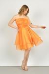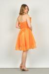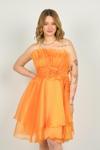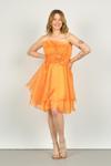 Detay: Katlı asimetrik etek, astarlı abiye elbise;