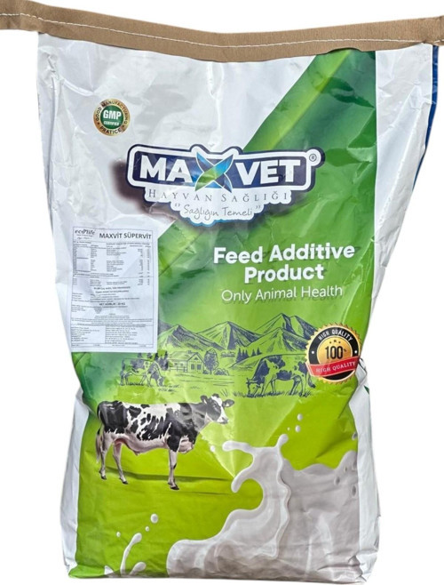 MaxVit SüperVit, büyükbaş ve küçükbaş hayvanlarınızın günlük vitamin ve mineral ihtiyacını karşılamak üzere özel olarak formüle edilmiş bir yem katkı maddesidir. 25 kg'lık kraft ambalajda sunulan bu ürün, hayvan sağlığını ve performansını artırmaya yönelik yüksek kaliteli bileşenler içerir.