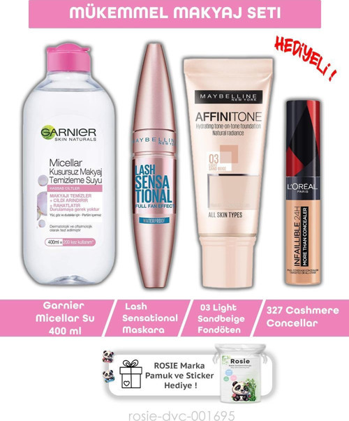 Maybelline New York Maybelline Lash Sensational Maskara, Fondöten, Conceller, Misel Su ve ROSIE