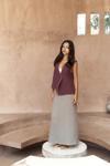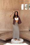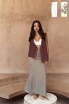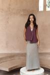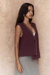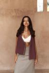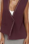 Pamuklu V kesim asimetrik tasarımlı yelek. Yalancı cep görünümlü, uyumlu nakış ip desenli.