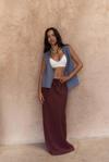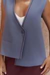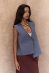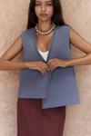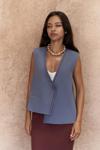 Pamuklu V kesim asimetrik tasarımlı yelek. Yalancı cep görünümlü, uyumlu nakış ip desenli.