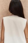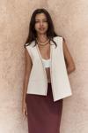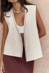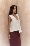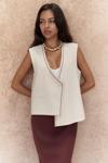 Pamuklu V kesim asimetrik tasarımlı yelek. Yalancı cep görünümlü, uyumlu nakış ip desenli.
