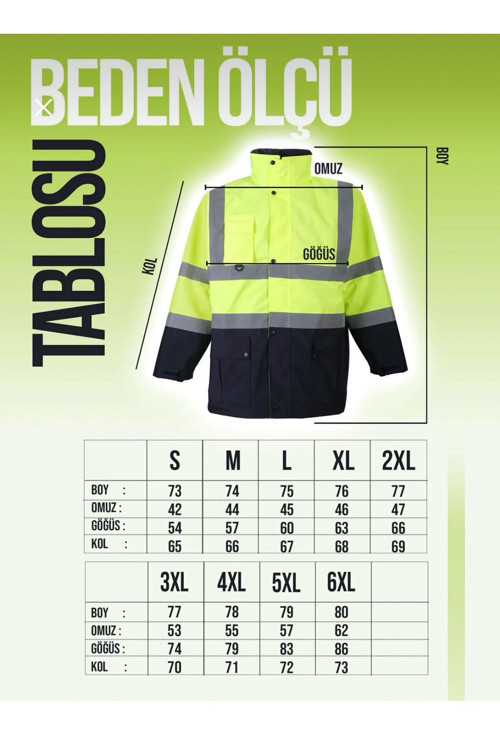- Gündüz ve gece kullanımına uygun, yüksek görünürlüklü Oxford parka mont, iş ortamında güvenlik ve şıklığı bir arada sunar.