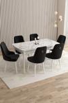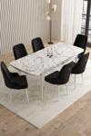 Mazaka Beyaz Mermer 80x132Açılabilir Mdf Masa Yemek Odası Takımı,Mutfak Takımı 6 Adet Sandalye