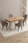 Asaella Mobilya Mazaka Meşe Desen 80x132 Açılabilir Mdf Masa Yemek Odası Takımı, Mutfak Takımı 4 Adet Sandalye