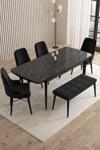 Mazaka Siyah Mermer 80x132 Açılabilir Mdf Masa Yemek Odası Takımı, Mutfak Takımı 4 Sandalye 1 Bench