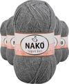 5 Adet Süper İnci El Örgü İpi 100 gr Gri Melanj 194 Nako Süper İnci %25 Yün %75 Premium Akrilik Karışımına sahiptir.