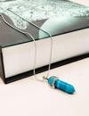 Mavi Akik Doğal Taşı Zincirli El Yapımı Tasarımlı Kolye Uç: 3,5 cm Zincir: 20 cm Kutulu