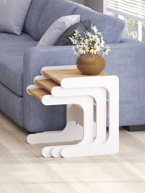 Mbes Mobilya 3`lü Zigon Sehba Atlantik Beyaz
