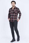 Detay: Ekose desenli, düğmeli kapak cepli, pamuklu oduncu gömlek;