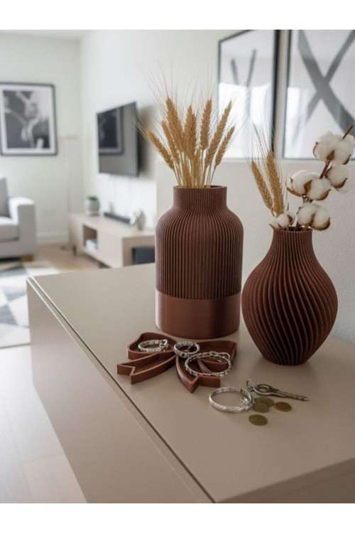 Mcy Dekor 3'Lü Set! Spiral Desenli Dekoratif Vazo (2 Adet) Ve Fiyonk Organizer - Ev Dekoru Seti
