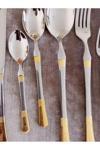 36 PARÇA 6 KİŞİLİK GOLD ÇATAL & BIÇAK & KAŞIK TAKIMI 18/10 ÇELİKTİR; ATMA VEYA SOLMA YAPMAZ; MAKİNEDE YIKANABİLİR GARANTİSİ VARDIR; TAKIMIN TOPLAM AĞIRLIĞI 2100 GRAMDIR; 6 PARÇA YEMEK KAŞIĞI, 6 PARÇA YEMEK ÇATALI, 6 PARÇA BAL KAŞIĞI, 6 PARÇA TATLI ÇATALI, 6 PARÇA BIÇAK, 6 PARÇA ÇAY KAŞIĞI;