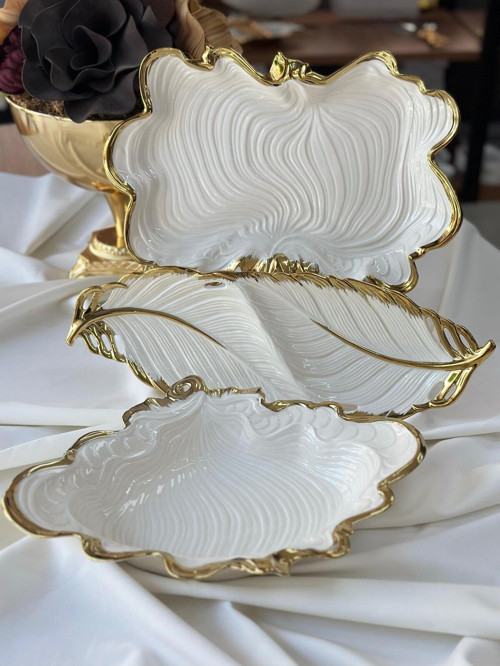 1 Adet Dikdörtgen Sunum Tabak 39x27 cm 1 Adet Oval Salata Kasesi 38x30 cm 1 Adet Oval 2 Bölmeli Tabak 44x16 cm
