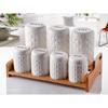 Şık ve fonksiyonel tasarımıyla 7'li Standlı Baharat Seti, mutfak düzeninizi tamamlayan zarif bir üründür. Beyaz seramik kapaklı baharatlıklar, modern ve minimalist bir görünüme sahiptir. Ahşap standı sayesinde düzenli kullanım sağlar ve mutfağınızda yer kaplamadan şık bir dokunuş ekler. Tuz, şeker, çay, kahve ve baharatları güvenle saklamak için idealdir. Kapakları sayesinde baharatlarınızı taze tutar ve hijyenik kullanım sunar.