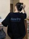 Baskılı Oversize Bisiklet Yaka T-shirt - Siyah