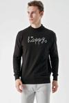 Baskılı Uzun Kol Yarım Boğazlı Dokuma Triko - Siyah