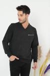 MDB Baskılı V Yaka Uzun Kol Dokuma Triko Füme