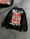 Bisiklet Yaka Üç İplik Baskılı Oversize SweatShirt - Siyah
