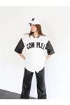 Complex Kolları Deri Kolej Oversize T-shirt - Beyaz