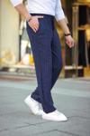 MDB Erkek Cizgili Dokuma Krep Jogger Buggy Pantalon Rahat Kalıp acivert