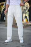 MDB Erkek Cizgili Dokuma Krep Jogger Buggy Pantalon Rahat Kalıp Beyaz