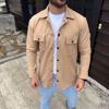 Erkek Diagonal Kumaş Cepli Çıtçıtlı Uzun Kollu, Gömlek Oversize Rahat Kalıp Günlük Şık Stil - Bej