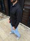 Erkek Diagonal Kumaş Cepli Çıtçıtlı Uzun Kollu, Gömlek Oversize Rahat Kalıp Günlük Şık Stil - Siyah