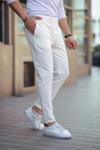 Erkek Diagonel Mikro Dokulu Cepli Beli Lastilki Pantolon - Beyaz