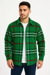 Erkek Ekose Desenli Düğmeli Polar Yakalı Uzun Kollu Gömlek Oversize Rahat Kalıp - Yeşil