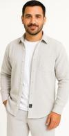 Erkek Fitilli Kadife Cepli Gömlek Oversize Rahat Kalıp - Gri